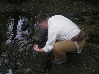 The lane that leads to the incredible 11th century mill is of great beauty. A slow running river teams with ducks and leaping fish as the scent of wild garlic burns your nostrils. Already butter and dragon flys were dancing along the top of the water and we stopped to film and wash the back of our necks in the cool stream. Pushing into the barn adjacent to the mill itself we set up for the show indoors as the weather was again on the turn. We had decided during the moist night before that we were going to have to invest in better tents and i reflected on this lessons in false economy as Audrey the director of the Mill drove me to a local camping store to rectify our mistake. I bought us two more sightly heavier but better before returning in time to set our props for the evenings show. We performed to a small audience of about 30 and with only two children.