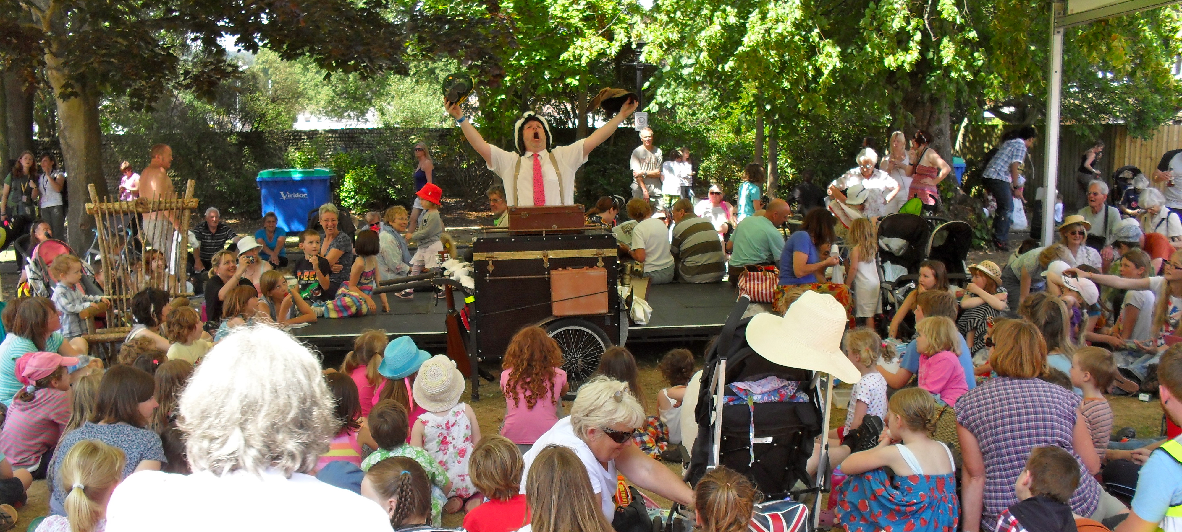 Trunks is a family friendly collection of songs, tales and routines accessible to all and can be performed in practically any situation or location. Trunks works as a roving walkabout show finding an audience anywhere and everywhere, but also as a static conventional ring show.